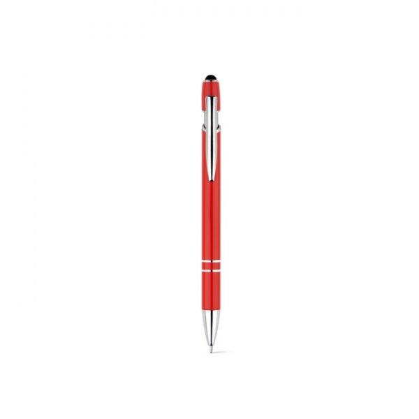 Guľôčkové pero z recyklovaného hliníka (100%) s dotykovým hrotom v hornej časti pera. Modrá náplň.