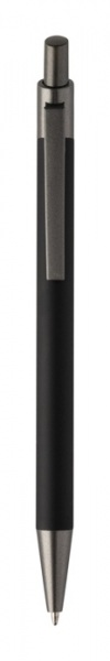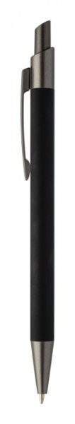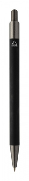 Guľôčkové pero z recyklovaného hliníka s pogumovaným telom a kovovými časťami. S modrou náplňou.
