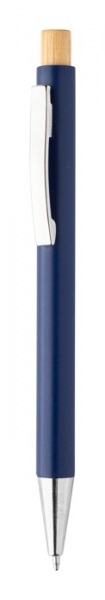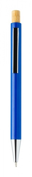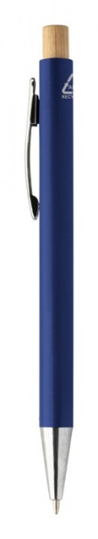 Guľôčkové pero z recyklovaného ABS plastu s bambusovým tlačidlom a kovovým klipom.