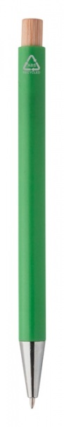 Guľôčkové pero z recyklovaného ABS plastu s bambusovým tlačidlom a kovovým klipom.
