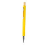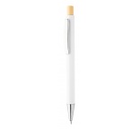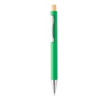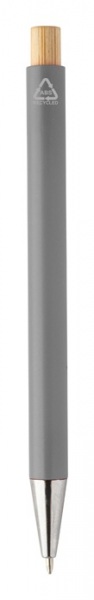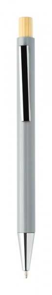 Guľôčkové pero z recyklovaného hliníka s kovovým klipom a bambusovým vrškom.