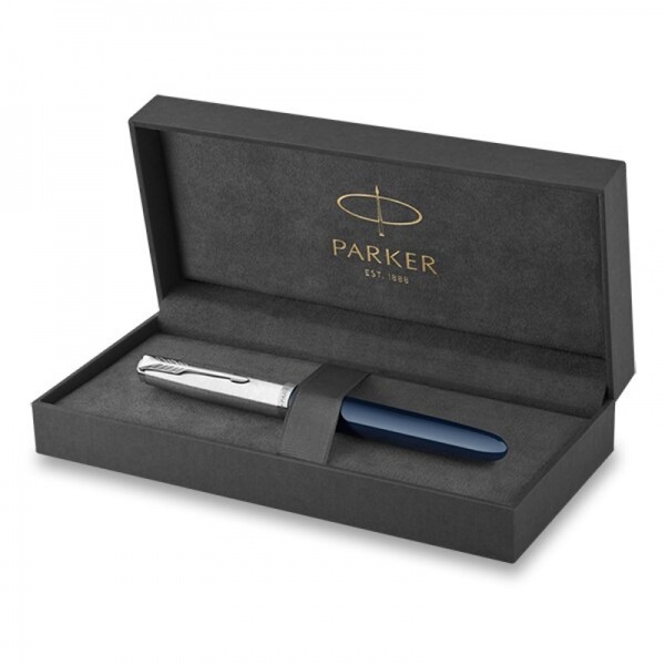Telo z ušľachtilej, temne modrej živice a vrchnák z nerez ocele s korunkou pokovovanou paládiom. V kombinácii s doplnkami pokovovanými paládiom. Hrot z ušľachtilej nerez ocele. Modrá a čierna bombička.