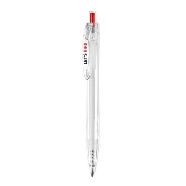 Guľôčkové pero z recyklovaného PET. Pero má modrý atrament.