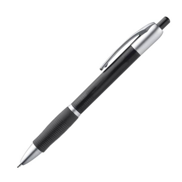Plastové guľôčkové pero s mäkkou vrúbkovanou gumenou rukoväťou. Pero má modrý atrament.