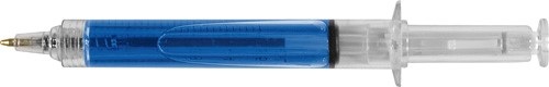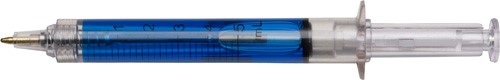 AS guľôčkové pero v tvare injekčnej striekačky s farebnou tekutinou.