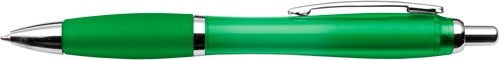Guľôčkové pero z ABS a s gumovou rukoväťou. Pero má modrý atrament.