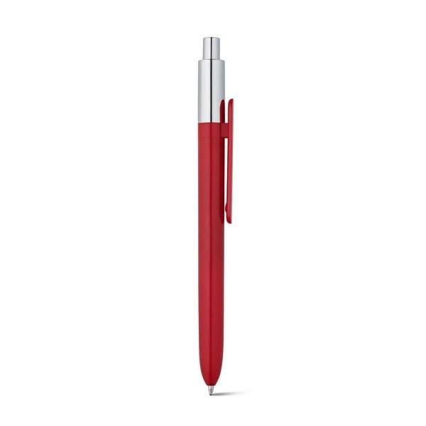 Guľôčkové pero z ABS s lesklým povrchom a lakovanou hornou časťou s chrómovým povrchom. Obsahuje náplň X20 s modrým atramentom.