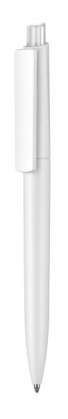Guľôčkové pero Ritter - Crest II s bielym telom a bielym alebo farebným tlačítkom. Pero má modrý atrament.