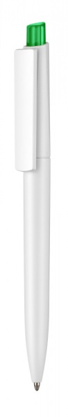 Guľôčkové pero Ritter - Crest II s bielym telom a bielym alebo farebným tlačítkom. Pero má modrý atrament.