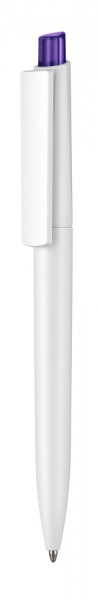 Guľôčkové pero Ritter - Crest II s bielym telom a bielym alebo farebným tlačítkom. Pero má modrý atrament.