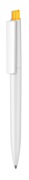 Guľôčkové pero Ritter - Crest II s bielym telom a bielym alebo farebným tlačítkom. Pero má modrý atrament.