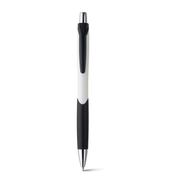 Guľôčkové pero z ABS a s protišmykovou rukoväťou. Pero má modrý atrament.