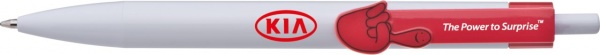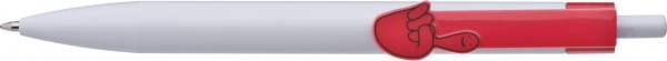 Plastové guľôčkové pero s bielym telom a klipom v tvare ruky. Široký výber zo 6 motívov. Pero má modrý atrament.
