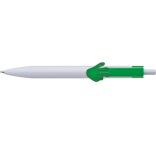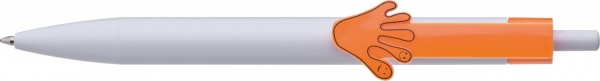 Plastové guľôčkové pero s bielym telom a klipom v tvare ruky. Široký výber zo 6 motívov. Pero má modrý atrament.