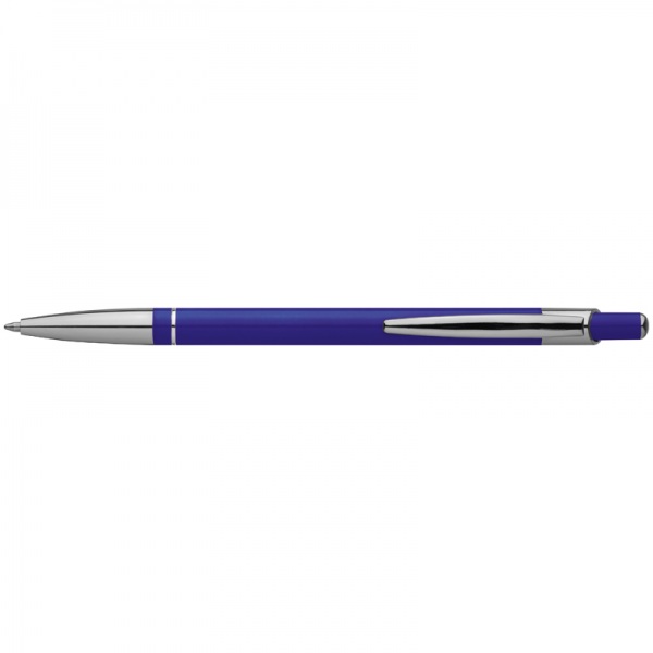 Elegantné tenké hliníkové guľôčkové pero s modrou náplňou.