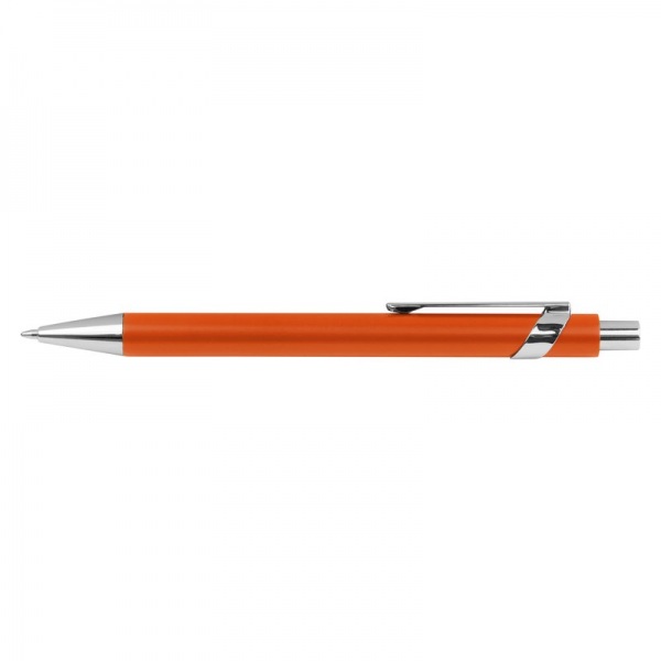 Kovové guľôčkové pero so striebornými prvkami a modrou náplňou.