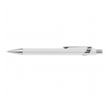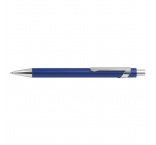 Kovové guľôčkové pero so striebornými prvkami a modrou náplňou.