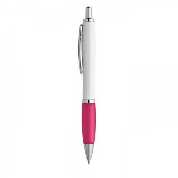 Guľôčkové pero s kovovou sponou a protišmykovou rukoväťou. Guľôčkové pero s bielym telom. The additional information presented is indicative and may vary
