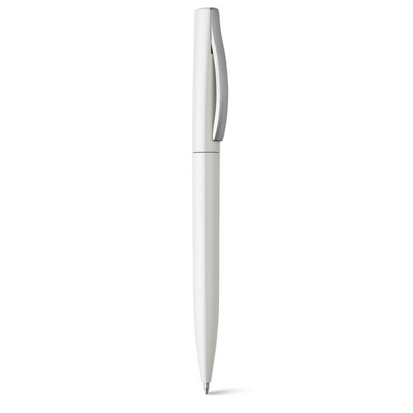 Guľôčkové pero z ABS s kovovým povrchom. Pero má čierny atrament.
