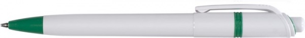 Plastové guľôčkové pero Stilolinea s bielym telom a farebnými detailmi. Modrý atrament. Dodávané s nemeckým atramentom Dokumental.