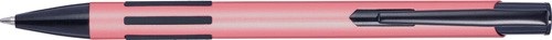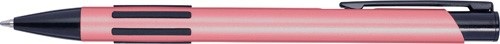 Kovové lakované guľôčkové pero s gumovými pásikmi na uchopenie.