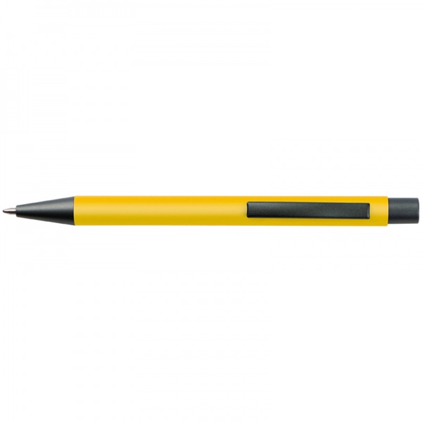 Plastové guľôčkové pero s farebným telom a kovovou sponou. Pero má modrý atrament.