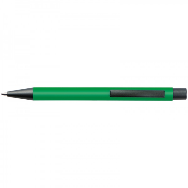 Plastové guľôčkové pero s farebným telom a kovovou sponou. Pero má modrý atrament.
