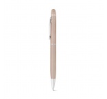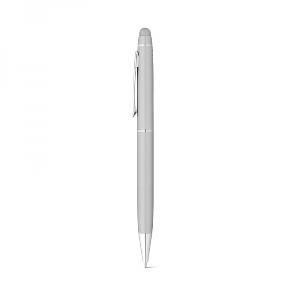 Otočné hliníkové pero z recyklovaného hliníka so stylusom na dotykové obrazovky. Modrá náplň.