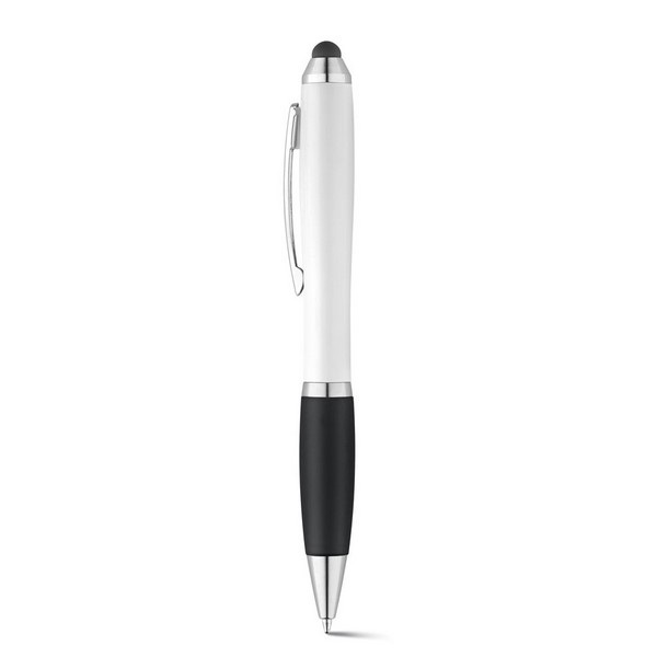 Guľôčkové pero s kovovou sponou, protišmykovou rukoväťou a dotykovou špičkou.