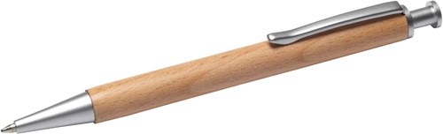 Drevené guľôčkové pero s kovovou sponou.