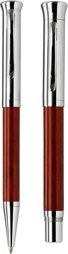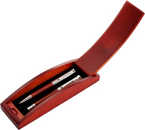 Sada pozostávajúca z guľôčkového pera a rolleru. Balené v puzdre z brezového dreva. Čierny atrament.