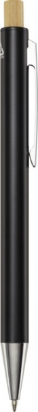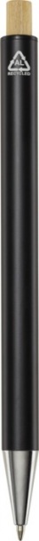 Guľôčkové pero Cyrus je vyrobené z recyklovaného hliníka, čo vyžaduje menej energie ako výroba hliníka z nerastných surovín. Tlačidlo je vyrobené z bambusu. Farba atramentu: Čierna. Dĺžka písania: 800 metrov. Rozmer hrotu: 1,00 mm.