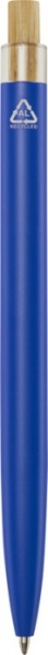 Guľôčkové pero Nooshin je vyrobené z recyklovaného hliníka, čo vyžaduje menej energie ako výroba hliníka z nerastných surovín. Tlačidlo je vyrobené z bambusu. Farba atramentu: Modrá. Dĺžka písania: 800 metrov. Rozmer hrotu: 1,00 mm.