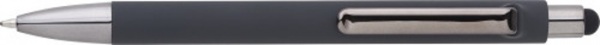 ABS guľôčkové pero s matným povrchom a lesklými detailmi UV laku. Gumový hrot pre kapacitné obrazovky. Modrá náplň.