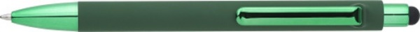 ABS guľôčkové pero s matným povrchom a lesklými detailmi UV laku. Gumový hrot pre kapacitné obrazovky. Modrá náplň.