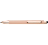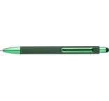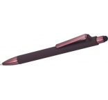 ABS guľôčkové pero s matným povrchom a lesklými detailmi UV laku. Gumový hrot pre kapacitné obrazovky. Modrá náplň.