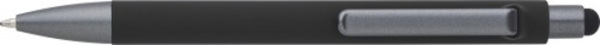 ABS guľôčkové pero s matným povrchom a grafitovými farebnými detailmi. Gumový hrot pre kapacitné obrazovky. Modrá náplň.