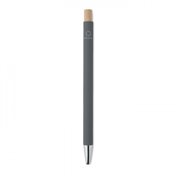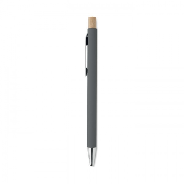 Guľôčkové pero z recyklovaného hliníka. Strieborný hrot a klip. Modrá náplň.