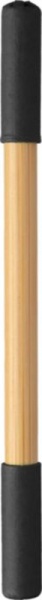 Bambusová nekonečná ceruzka a guľôčkové pero. Jedna strana s nekonečnou ceruzkou a druhá s guľôčkovým perom, obe s farebným kartónovým vrchnákom. Modrá náplň.