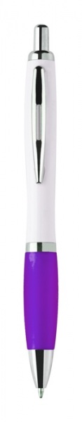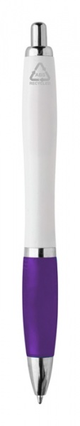 Guľôčkové pero z recyklovaného ABS plastu s bielym telom, farebným úchopom a chrómovanými časťami. S modrou náplňou.