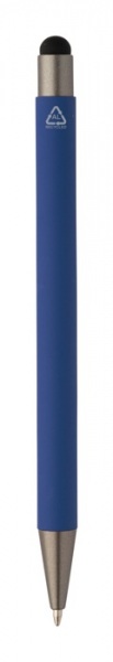 Guľôčkové pero a dotykové pero z recyklovaného hliníka s pogumovaným telom a kovovými časťami.