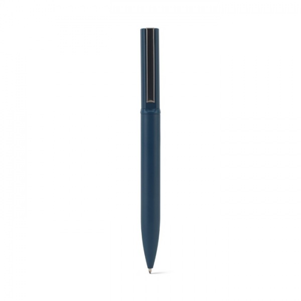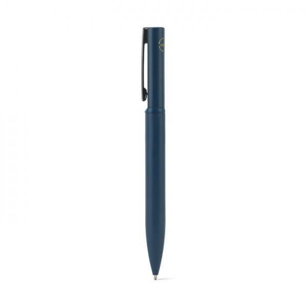 Elegantné guľôčkové pero z kovu (60% recyklované). Má klip, otočný mechanizmus a modrý atrament. Dodávané v darčekovej krabičke z kraftového papiera, vyrobené z certifikovaného FSC™ materiálu a iných kontrolovaných materiálov.
