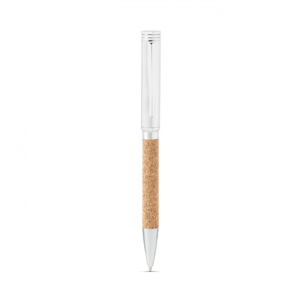 Sada obsahuje guľôčkové pero a kľúčenku. Guľôčkové pero má kovový klip, otočný mechanizmus a modrý atrament. Dodávané v darčekovej krabičke z kraftového papiera. Keďže výrobok je vyrobený z prírodných materiálov, farba a výsledok tlače sa môžu líšiť.