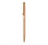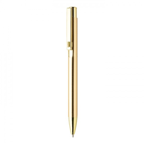 Guľôčkové pero z recyklovaného hliníka s lesklým kovovým povrchom. S modrou náplňou.