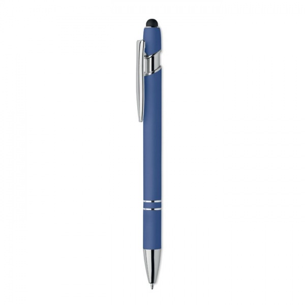 Guľôčkové pero z recyklovaného hliníka so stylusom. Modrá náplň.