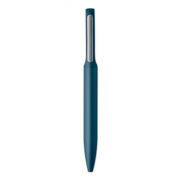 Otočné guľôčkové pero s hlavňou z recyklovaného hliníka, otočnou časťou z recyklovaného ABS a kovovým klipom s bambusovými detailmi. Modrý atrament.