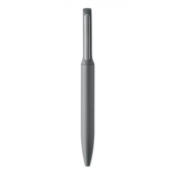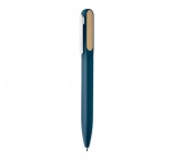 Otočné guľôčkové pero s hlavňou z recyklovaného hliníka, otočnou časťou z recyklovaného ABS a kovovým klipom s bambusovými detailmi. Modrý atrament.