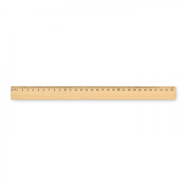 Pravítko z borovicového dreva s dĺžkou 30 cm s centimetrovou stupnicou na jednej strane a palcovou stupnicou na druhej strane.