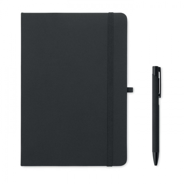 Zápisník A5, guľôčkové pero z recyklovaného hliníka a 350 ml dvojstenný pohár z recyklovanej nehrdzavejúcej ocele s PP viečkom a popruhom v darčekovej krabičke.