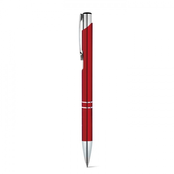 Hliníkové guľôčkové pero s klipom a kovovým povrchom. Čierna náplň.
